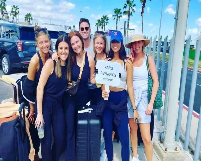 Meeting point Important notes: on your arrival day at the Cabo Airport; after you check immigration, pick up your luggage at the band and pass through the customs checkpoint please walk straight out to the terminal passenger’s reception area (on your way out nobody is authorized to check you IN….. they are timeshare sellers !!!!!) just keep walking until you see your driver holding your name sign at the Umbrella #10, he will check you in and take you to the vehicle.