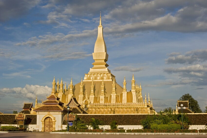 Next, stop at the Patuxai monument, which resembles the Arc de Triomphe in Paris with a Lao twist, and snap a picture with the monument that is decorated with Lao mythical creatures. At your last stop, Pha That Luang, admire the stunning, gold-covered stupa that is said to be built in the 3rd century and then complete your tour with a delicious Lao meal.